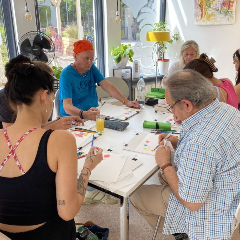 JETZT Neu bei La Pelote In diesem freien Kreativprozess spielst du im Aquarell mit Farben und Formen. Es gibt keine künstlerischen Ansprüche. Du fokussiert dich auf Gedanken und Gefühle und drückst diese in Farbstimmungen aus. ...Mehr lesen