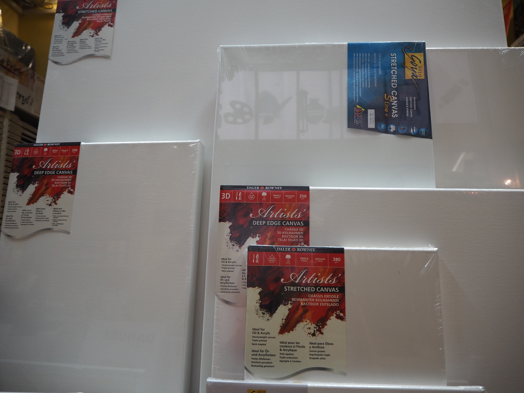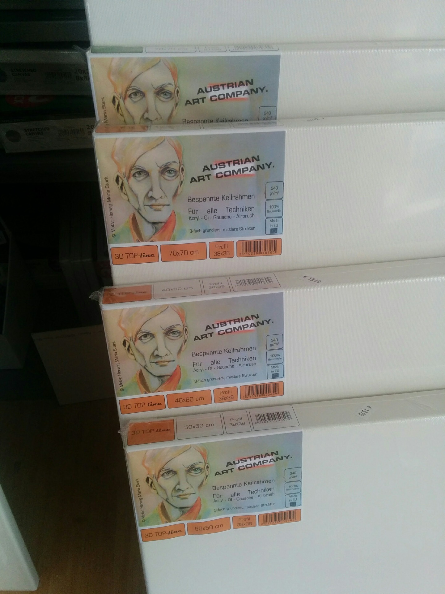 Keilrahmen in verschiedenen Formaten lagernd - auch günstige 3-er Packs bitte anfragen 100% Baumwolle 3800 g/m2 mittelfeines Tuch ...